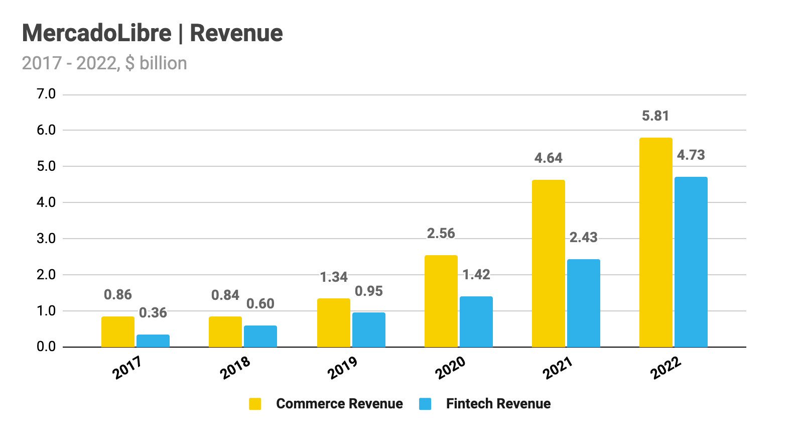 MercadoLibre (NASDAQ: $MELI ), the LatAm e-commerce and fintech giant, reported its Q4 2022 results on Thursday smashing analysts' estimates. In Q4 2022, Gross Merchandise Volume grew 20% YoY to $9.6 billion, driving a 22% YoY increase in Commerce revenue to $1.66 billion. Total Payment Volume grew 49% YoY to $36.0 billion and Credit Portfolio grew 68% YoY to $2.84 billion, driving a 73% YoY increase in Fintech revenue to $1.34 billion. The company posted a Net Income of $165 million on consolidated net revenue of $3.0 billion (compared to a Net Loss of $46.1 million on consolidated net revenue of $2.1 billion in Q4 2021).