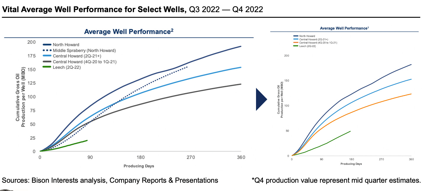 The situation has since improved, with Vital having recorded better well performance for Q4 2022. Vital’s newer Howard county wells are more profitable than management expectations, with payback periods of less than 1 year. And Vital’s Leech long lateral wells, which were originally a cause of concern, appear on track for much better performance. Vital’s improving well performance remains underappreciated and offers upside to their production from here, while the market remains focused on previous production misses.