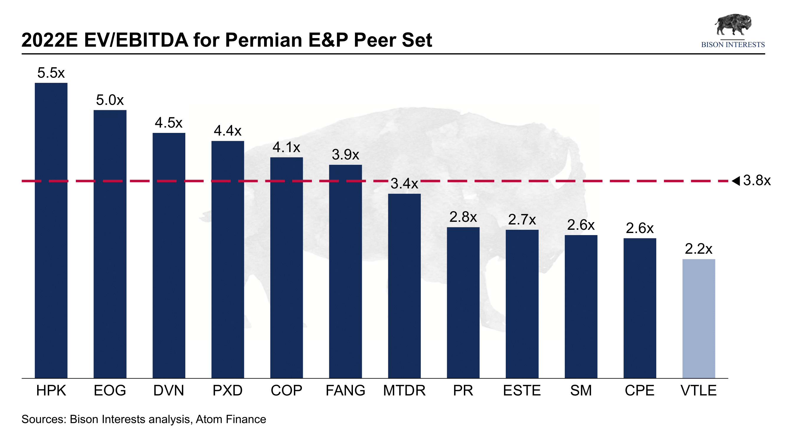 And while there is upside to all VTLE’s peers if they were to trade up to their net asset values (NAVs) at current commodity prices, VTLE's current valuation offers significantly more upside: